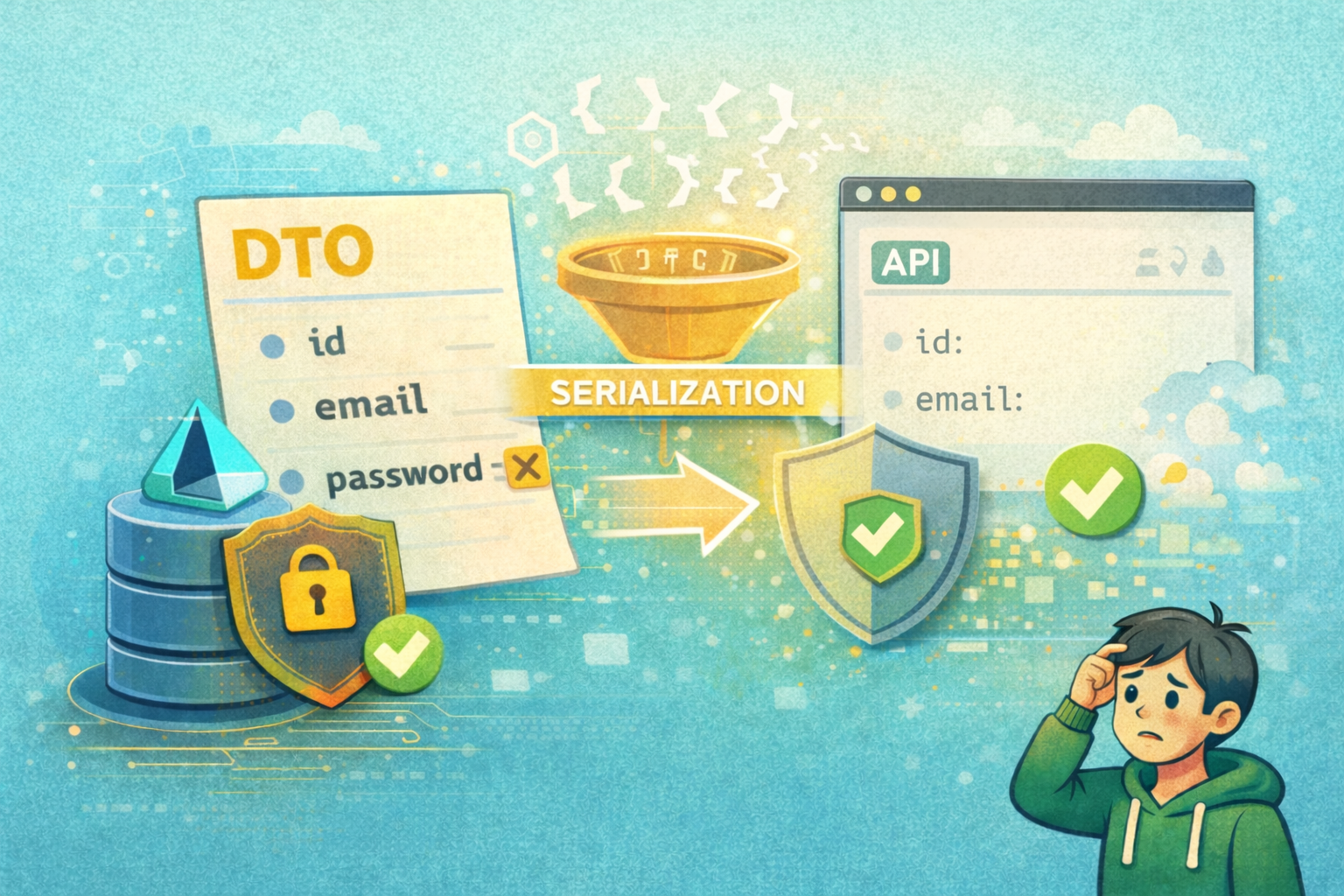 Nest에서 Serialization은 “컨트롤러가 반환한 객체를 네트워크 응답으로 내보내기 직전”에, 규칙에 따라 변환/정제(sanitize) 하는 단계이다. 비밀번호 같은 민감 필드를 제거하거나, 엔티티의 일부 속성만 노출하는 용도로 쓰기 딱 좋다.